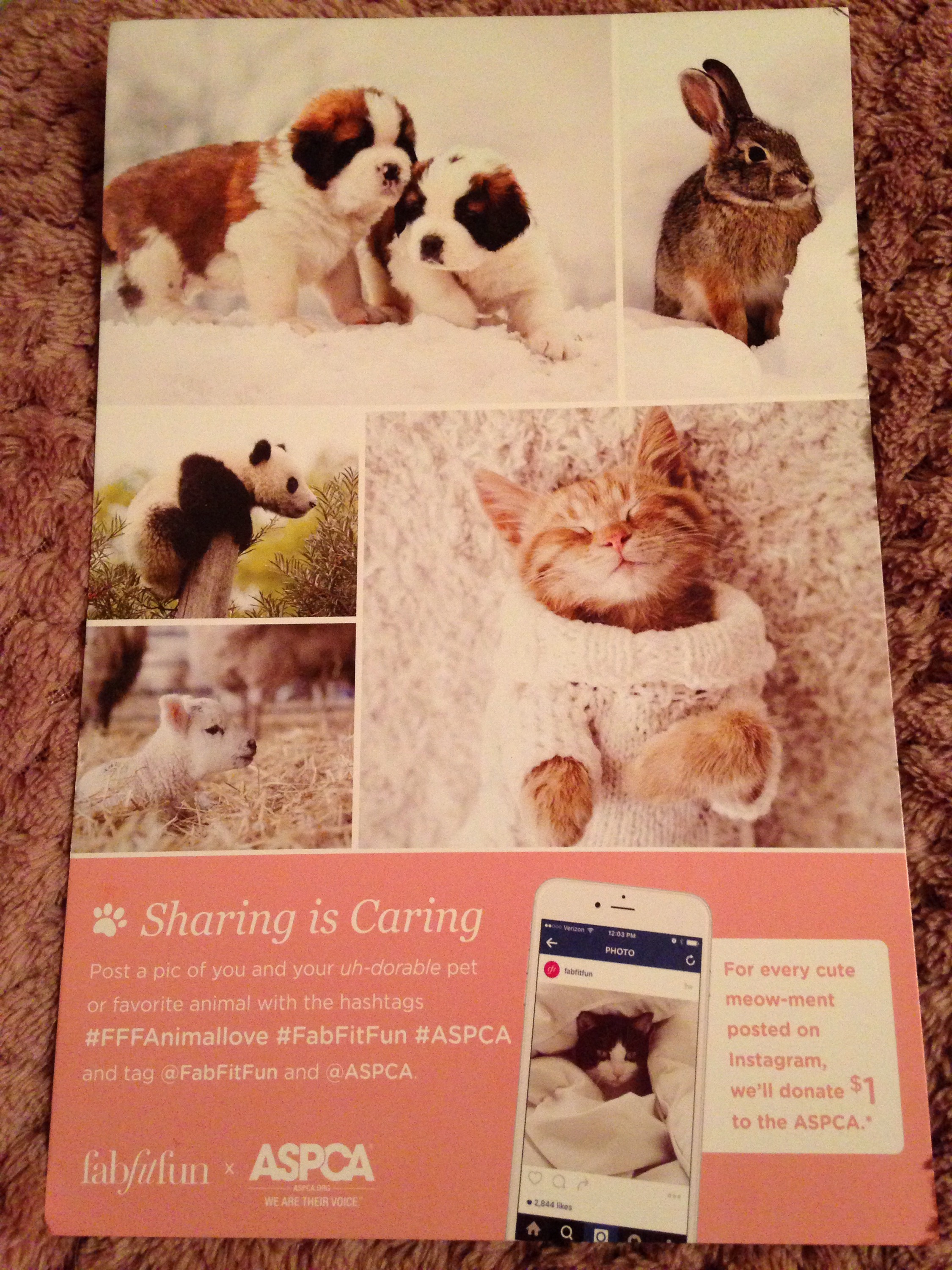 Included above is something everyone with an Instagram account can get in on! If you post a pic of you and your pet or a pic of your favorite animal with the hashtags #FFFAnimallove #FabFitFun #ASPCA on Instagram Fab Fit Fun will donate $1 to the ASPCA. That is pretty awesome so start snapping some pics of your pets or animals you love.
