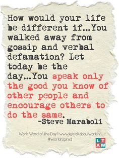 We all need to vent our frustrations in the workplace every now and then, but when someone is picked apart or attacked behind their back, this is not okay; it is mean, destructive and defamation of character. When you talk directly about someone in a derogatory way, you are influencing the opinions of others and destroying someone’s character/image whom you honestly have no clue as to what is going on in their world. That lady in the office who drives you crazy, she may be going through a divorce, struggling with alcoholism, has a child who is ill, has a husband who tells her daily what a loser she is or she may be trying to maintain her sanity to the best of her ability. Someone throwing negative words around behind someone’s back is a type of bullying (passive aggressive bullying).