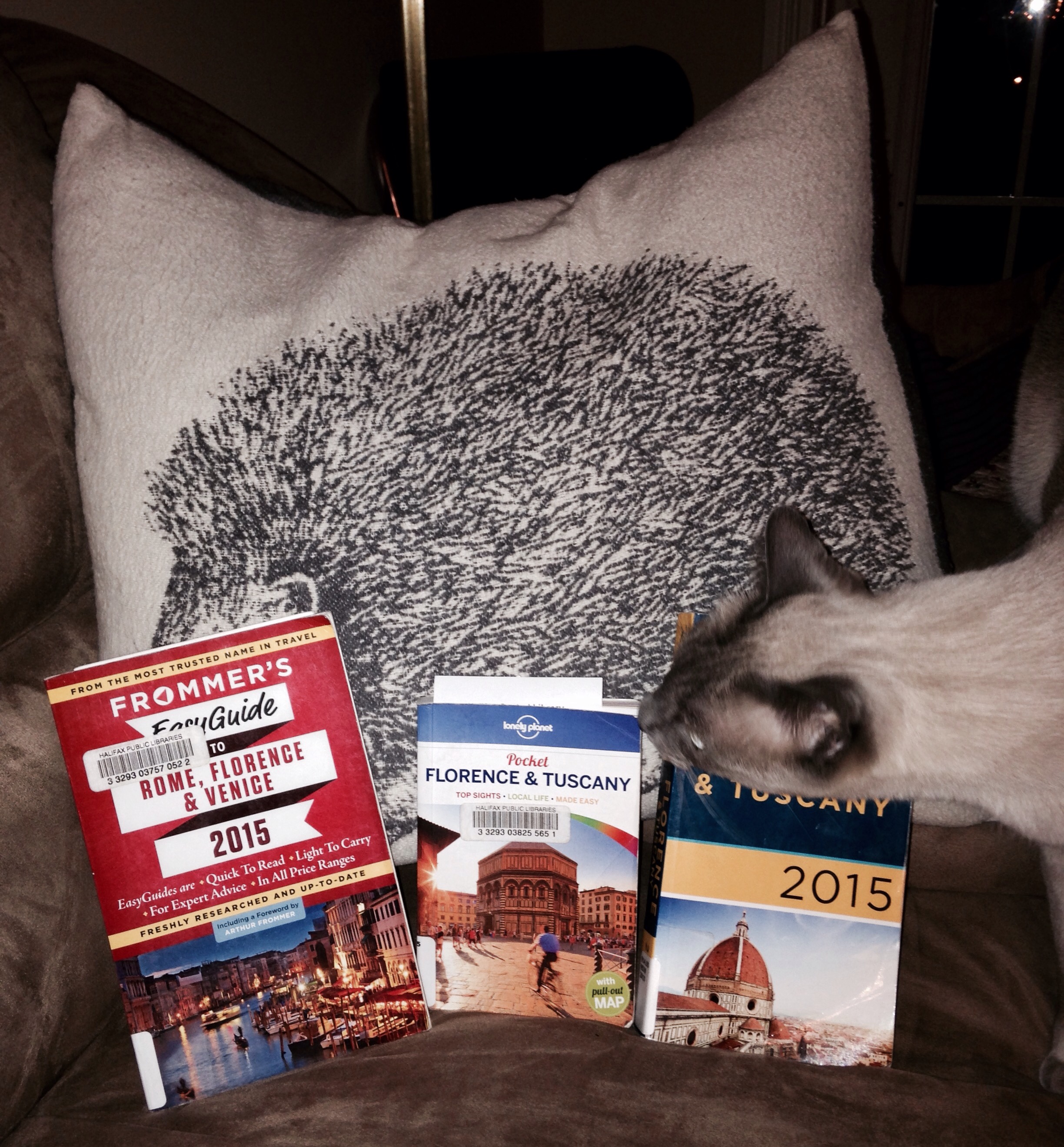 Even Gershwin the Siamese kitty wants to explore the wonders of Tuscany. I don’t have to return them until early July and if I want to I can always renew one or all of them. All for the very low cost of $0.00. At one point in time I would have gone to a book store and just bought a book or possibly two which most likely would have put me out $40.00.
