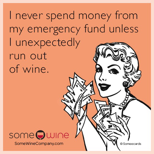 You can do it! Set a goal for $1000 minimally, even if you can only put $50 in a pay or less, just do what you can and do not touch the money. And running out of wine is not an emergency.