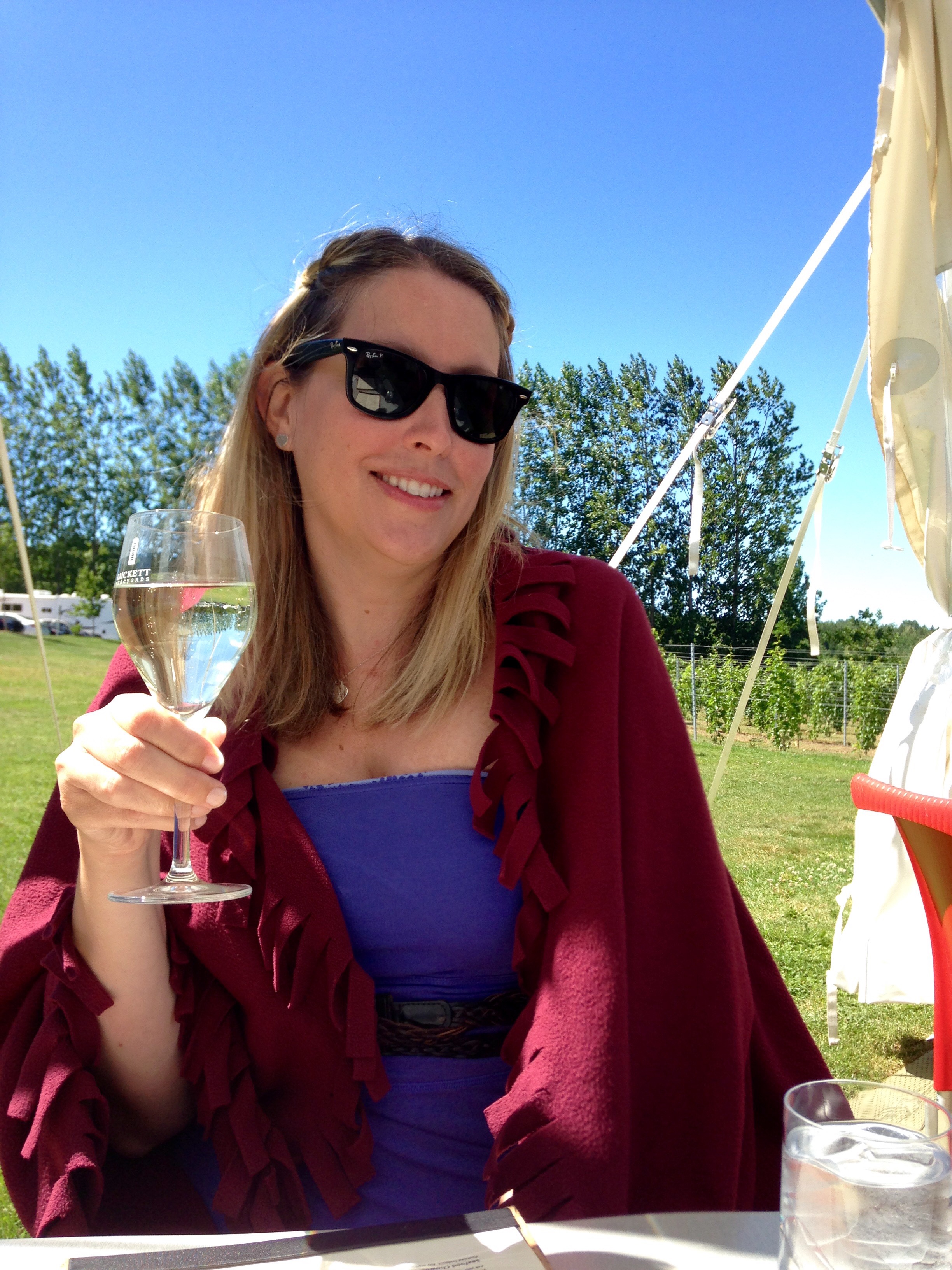 We arrived just before noon and found a perfect wee table for us which captured a bit of sun for me and shade for the boy.  It was surprisingly chilly with the sweet smells of the vineyard caught up in the late morning breeze.  Snuggly warm blankets were provided!