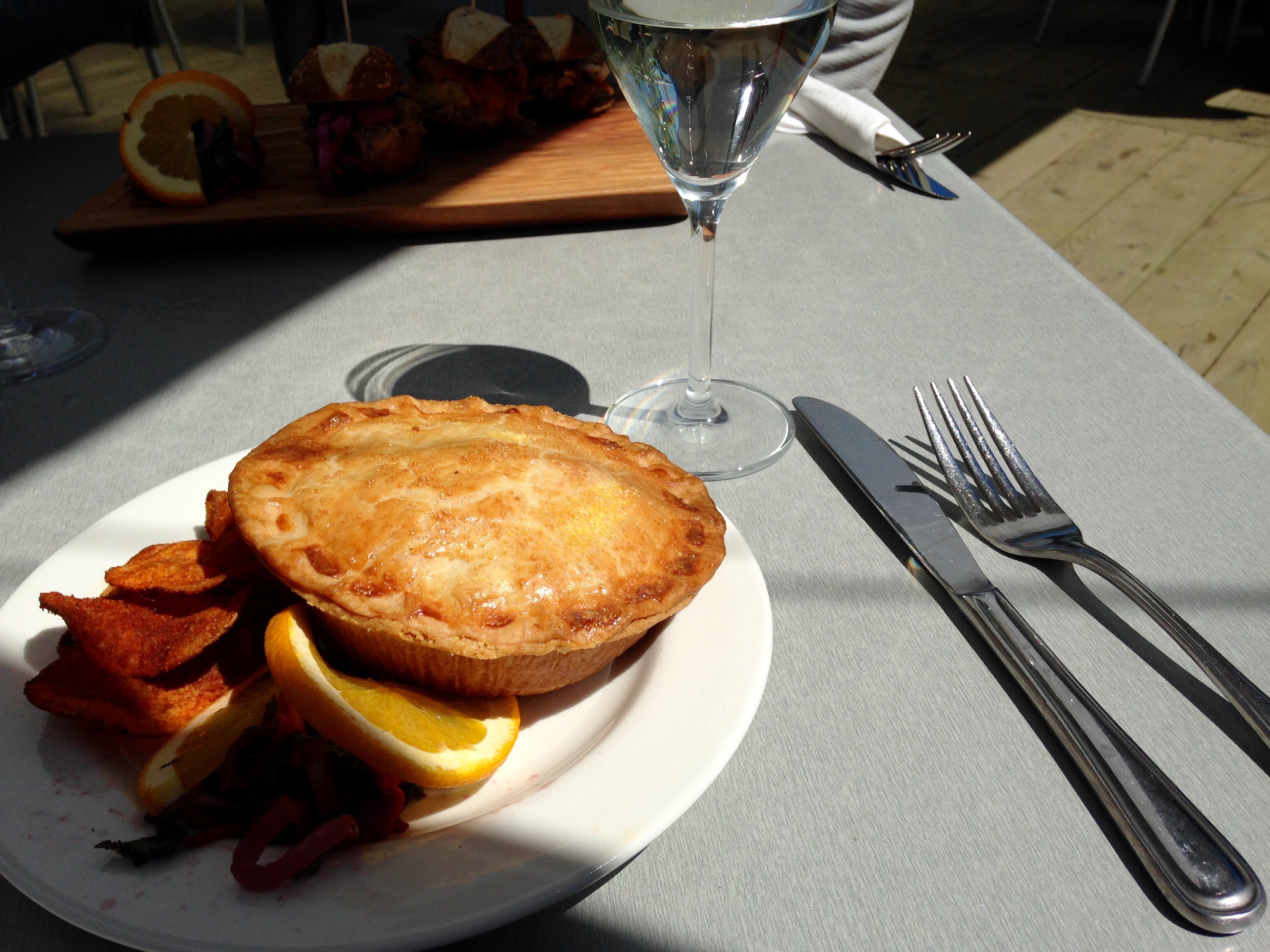 I went with the Chicken Pie which has a  savory gravy spiked with Ortega wine!  It was delicious and the chicken was impeccable with no wobbly bits which I often seem to find in most chicken pies. It was pure perfection!  I was a happy girl.  It came with a side of spicy chips and a kale slaw which was full of flavor and not “Kale” like at all!