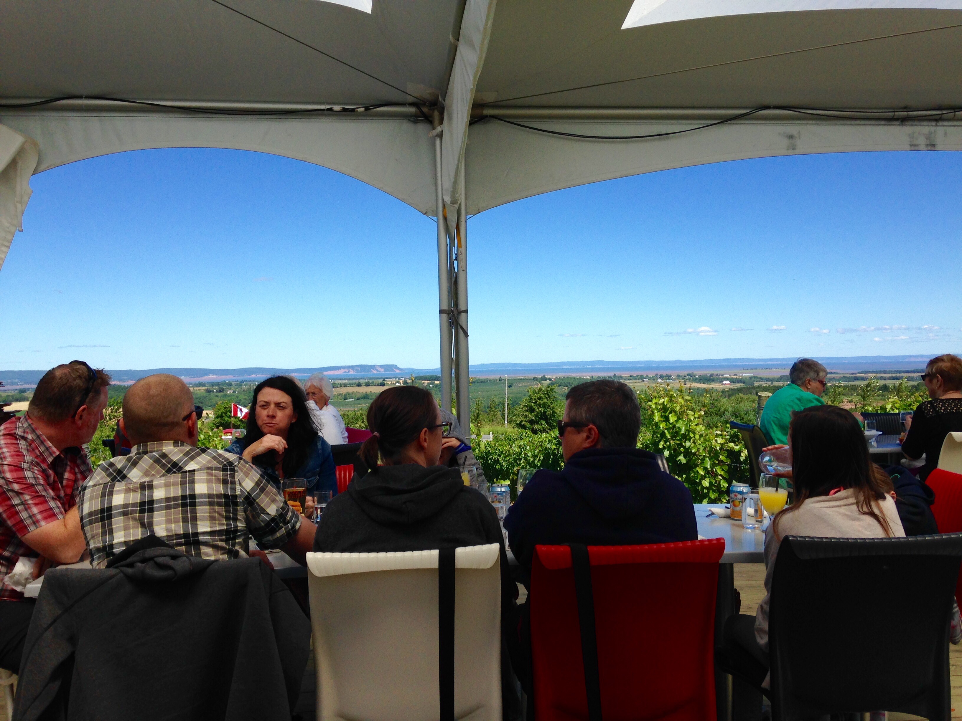 Yesterday, Brian and I drove to Gaspereau Valley to visit Luckett  Vineyards for lunch and a wine tasting. The green scenery of the vineyard on site is absolutely breath taking, not to mention the background.  Luckett’s has a posh feel to it yet is not pretentious but rather down to earth.  Nova Scotia can give you a rare moment of visiting something European, yet is just an hour’s drive away.