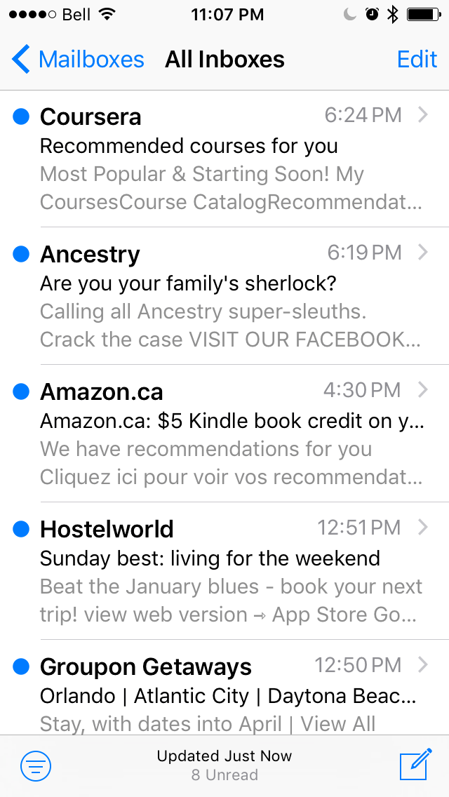 The last thing I want to do in my spare time is be sorting through a variety of emails I have subscribed to which I don’t even read.  For some reason I have subscribed to a variety of sources offering me discounts on travel and a bunch of other money savers which ironically still encourage you to spend money.  Why?!?  I rarely action any of these discounts but think to myself what a load of crap!
