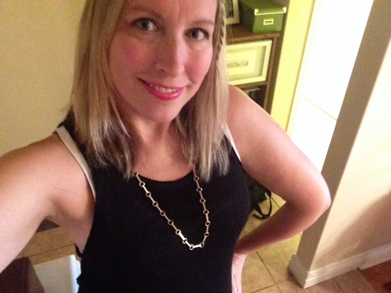 Me in a Club Monaco top (top is from four years ago not sure if that would be eight seasons ago but still cute), gold necklace is older than me (not saying how old!) which my Mom gave me – still stylish!