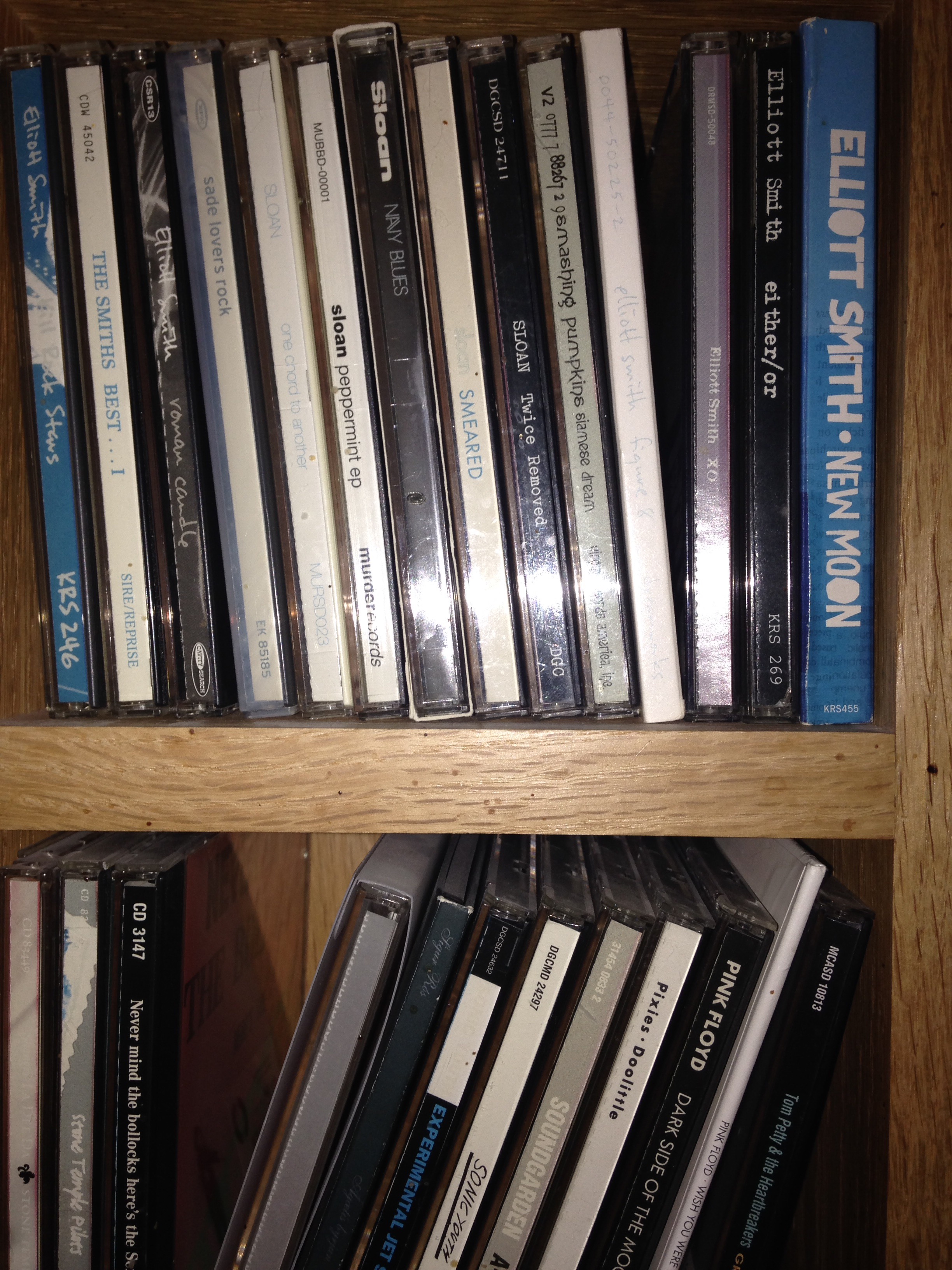 Above, photo of strange slim plastic cases hold shiny discs which I believe play music if placed in archaic contraption. Rare machinery to stumble upon these days.