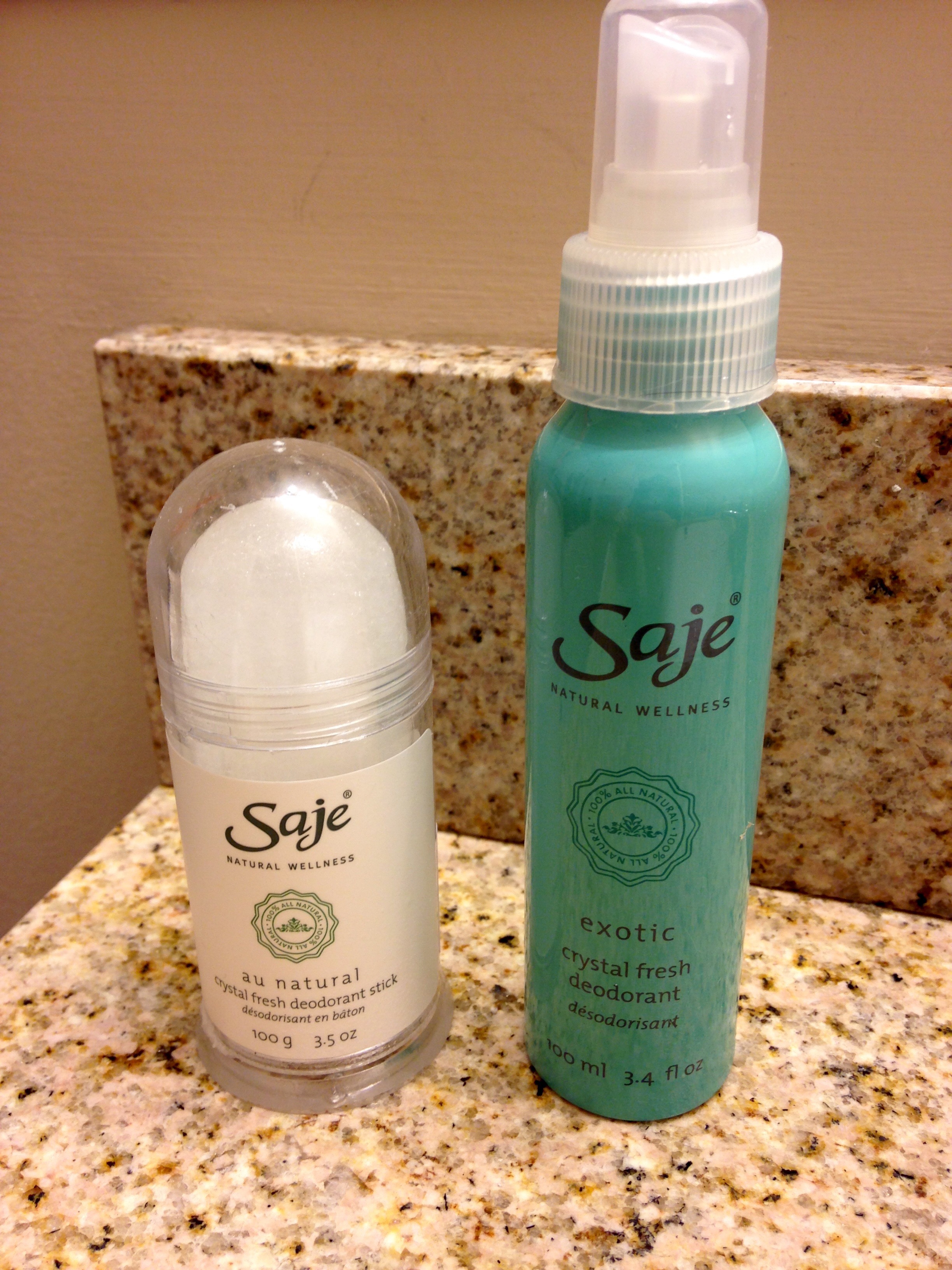 I was forewarned by a Saje sales associate I may go through a type of detox for the first two weeks as my pores in my underarms had been clogged for so long as an anti-per spirant prevents you from perspiring. Makes sense, so with some trepidation, I tried it, and on the first day I went to the gym and had a crazy cardio workout, and I discretely did the sniff test and no smell. I was pleasantly surprised, and I assumed my body had not had much of a chance to rid itself, and that the toxins and funky smell would rear its skanky head within the next two weeks. It has been almost a month now, and I have been working out almost daily and I am a “sweaty Betty” when I work out. I am not one of these girls who has a nice glow on or becomes a bit flushed in the face. Nope, not me. I am dripping with perspiration and a bright red face. We have had a few hot humid summer days thus far in Nova Scotia, but again, my natural deodorant hasn’t failed me yet.