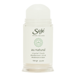 I am genuinely excited about this all natural deodorant which happens to be made by Saje because I have been looking for YEARS for one which works. I have tried several different kinds by many different brands, and some would smell amazing, but then my body odor would comingle with the lovely scent, and I didn’t feel fresh, but scented with funk. Other deodorants felt wet and sticky on my skin, and combined with perspiration, not pleasant. I decided to give this one a try, as I thought for the sake of my health and not knowing what the long term effects would be on my body after ingesting small amounts over the decades of aluminum and other chemicals into my blood stream.