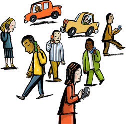 Try walking amongst a whole pod of cyborg texting zombies coming at you from every which way direction, it is like a video game, where it would appear the goal of the game is to make it to your destination without having someone bump into you.
