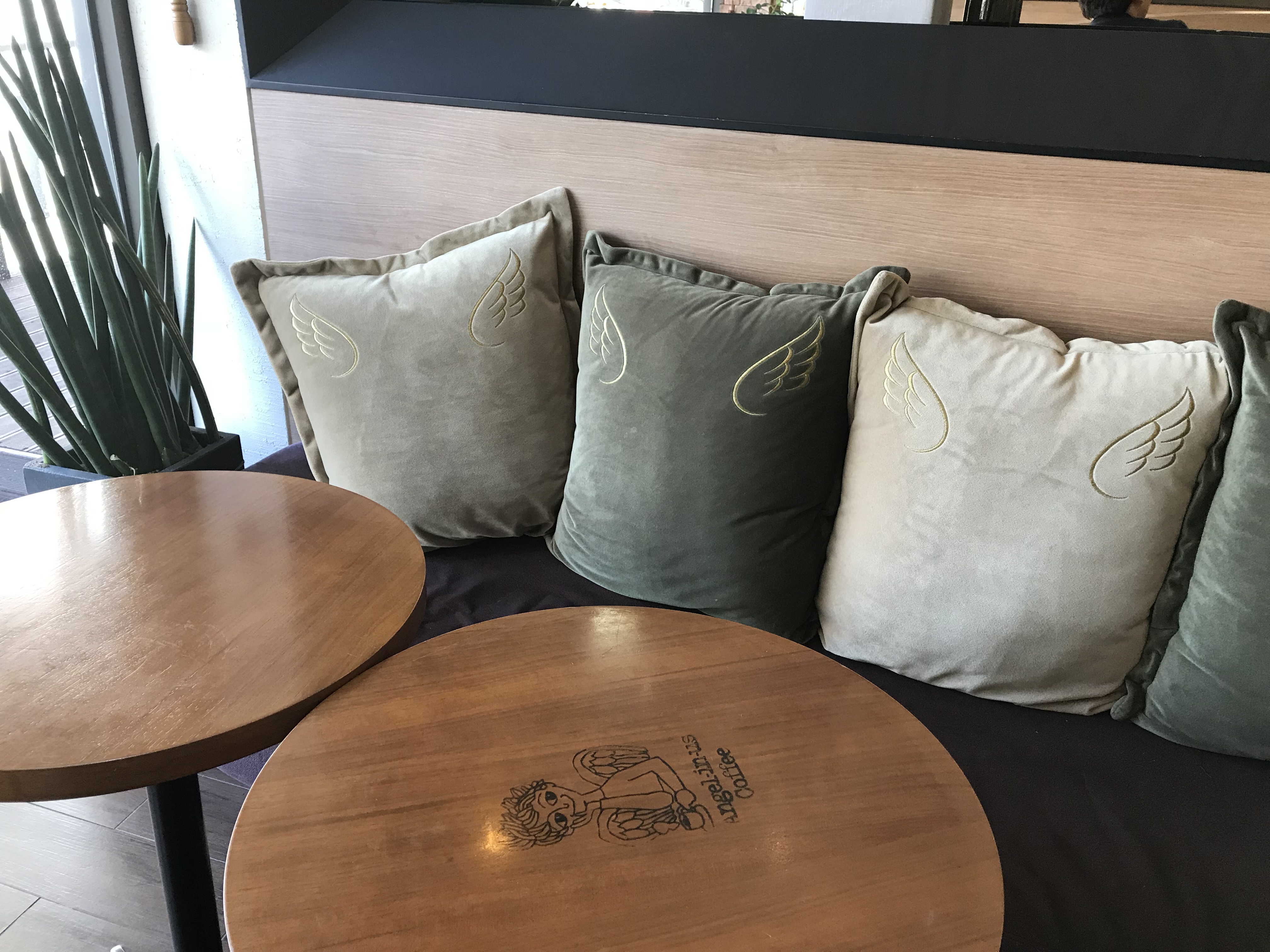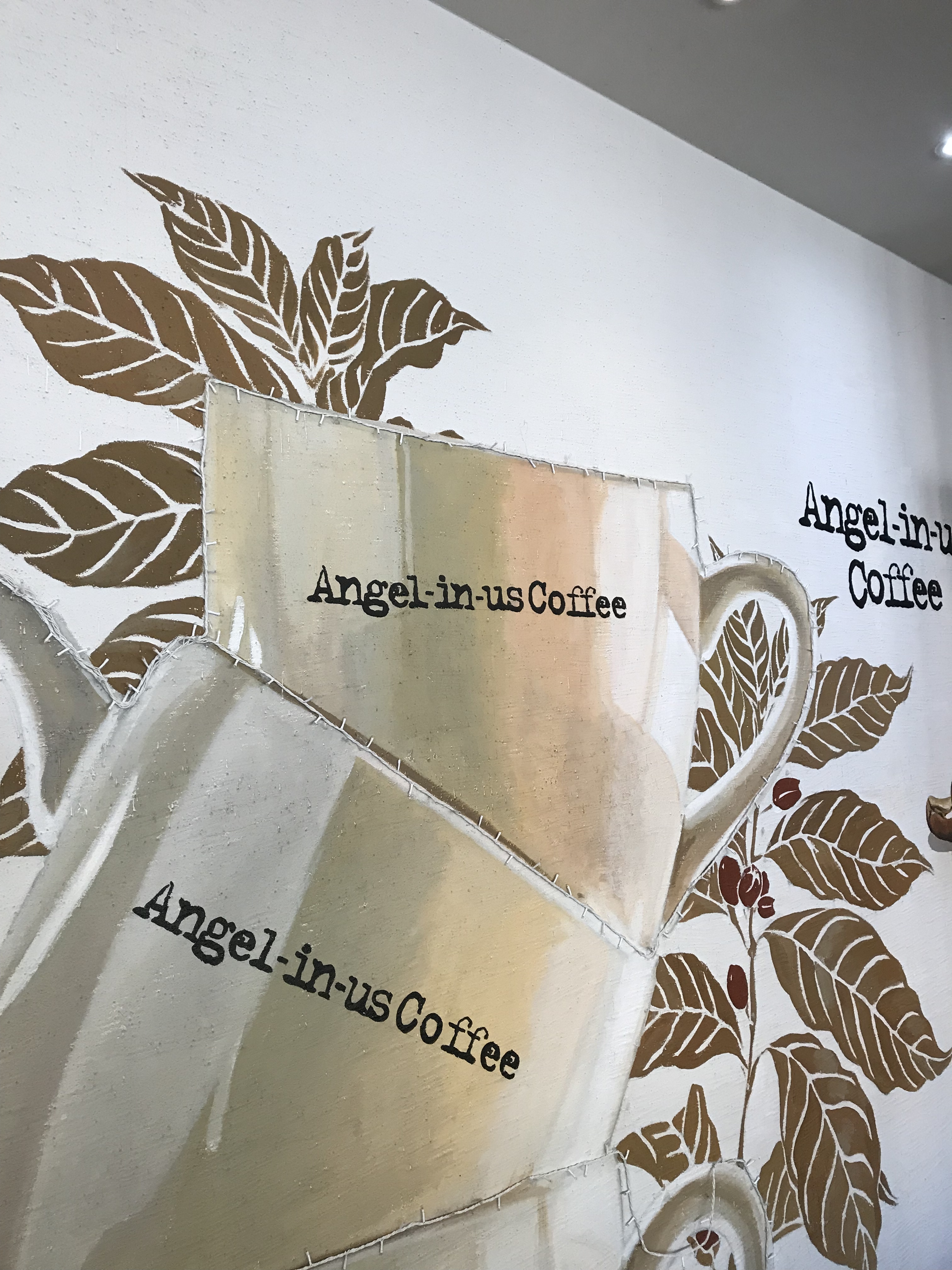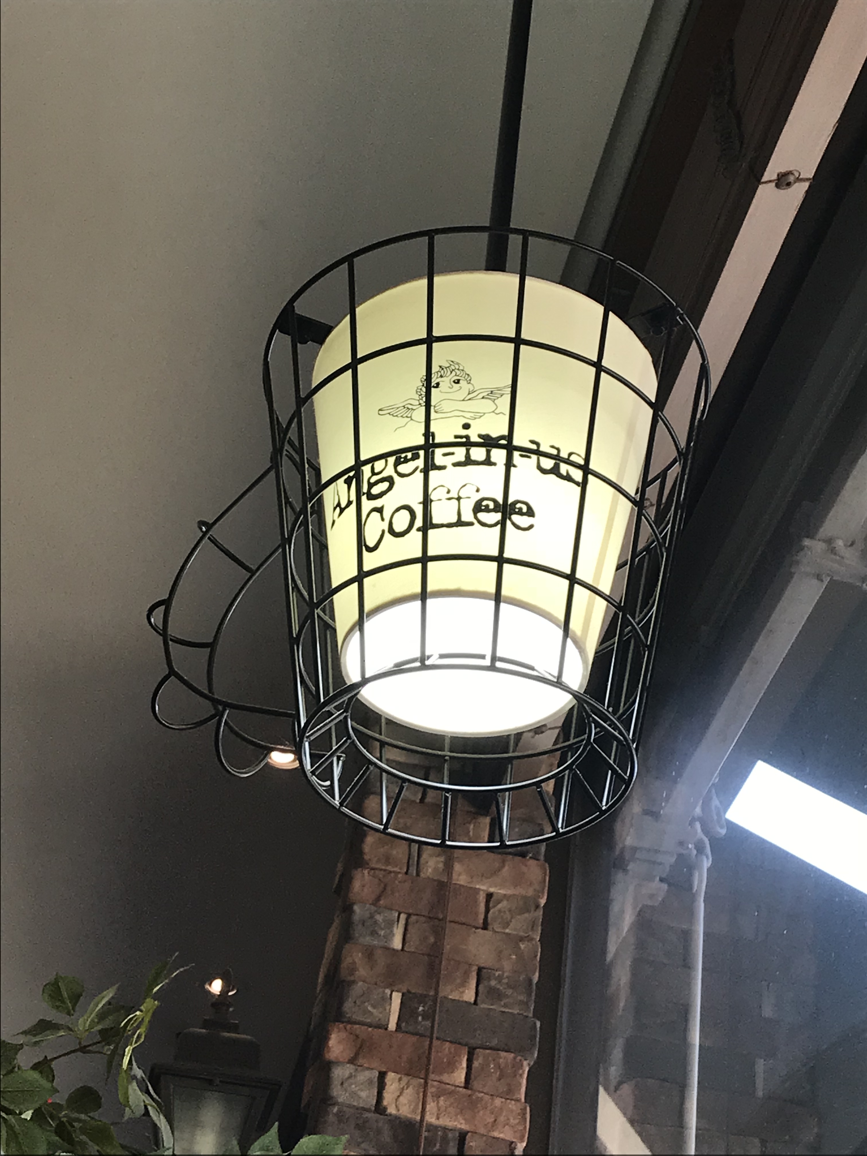 Even their lamps are decked out with the Angel in us Coffee logo and the cage is in the shape of a mug. Adorbs, I know…