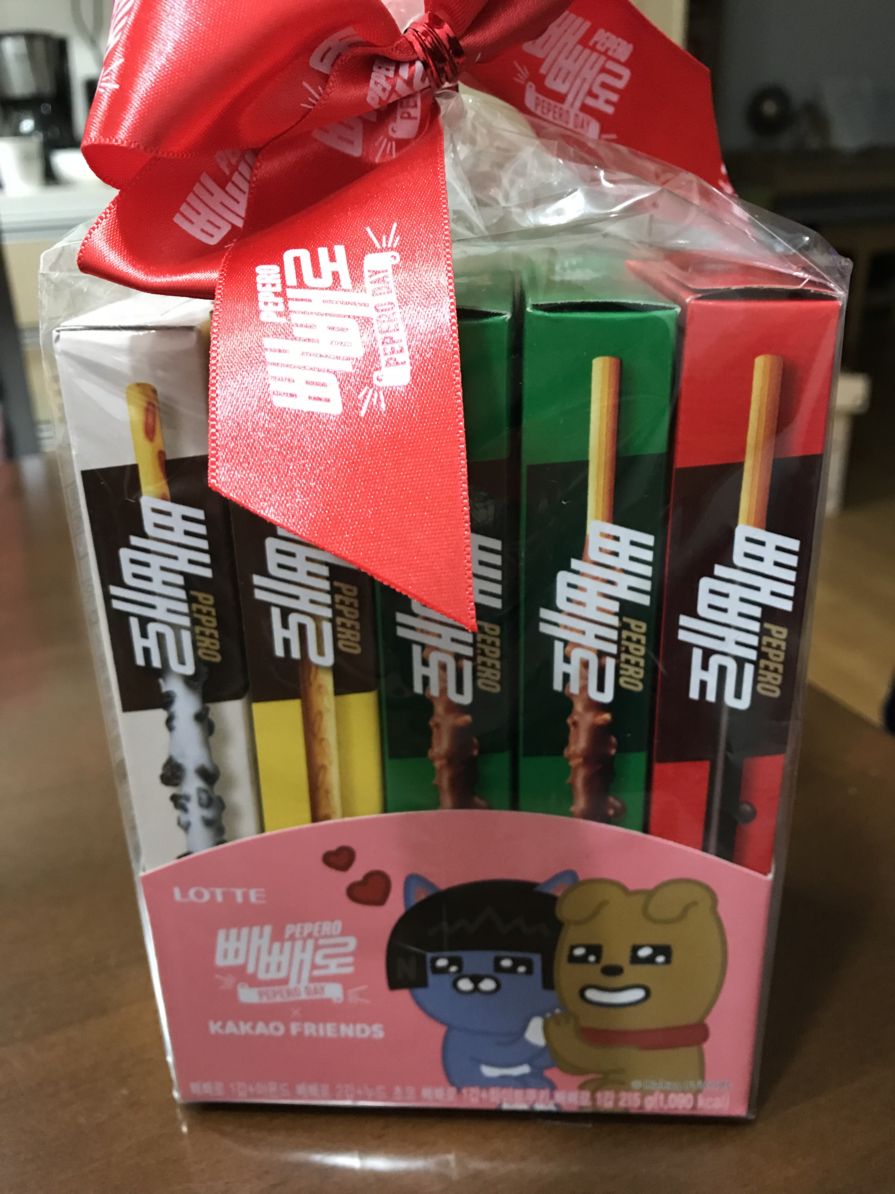 You can buy K-pop Pepero designed boxes or what I purchased, the KakaoTalk friends.