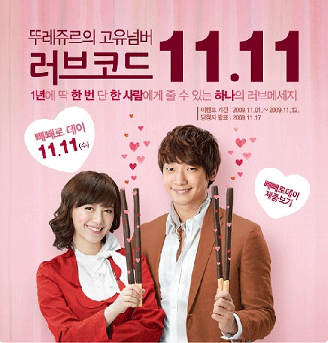 Why Pepero Day is on the 11th of November is because the said month combined with the 11th looks like the Pepero cookie sticks 11.11. It is basically a Hallmark holiday like Valentine’s Day (however there was a real Saint Valentine); a day to give your friends Pepero and eat as many sweet sticks to your delight.