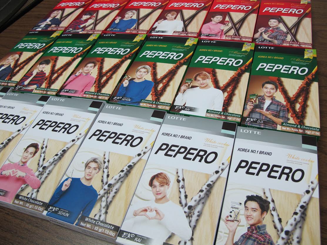 Pepero is a Lotte product and is specifically “Korean”. According to my research the cookie stick came into existence in 1986 and there are nine flavors, including a yummy cookies and cream flavor and a plain hollowed out stick full of chocolatey goodness.