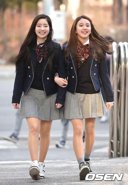 Above two middle school South Korean girls in their school uniforms which is mandatory for all students to wear once they hit middle school and high school.