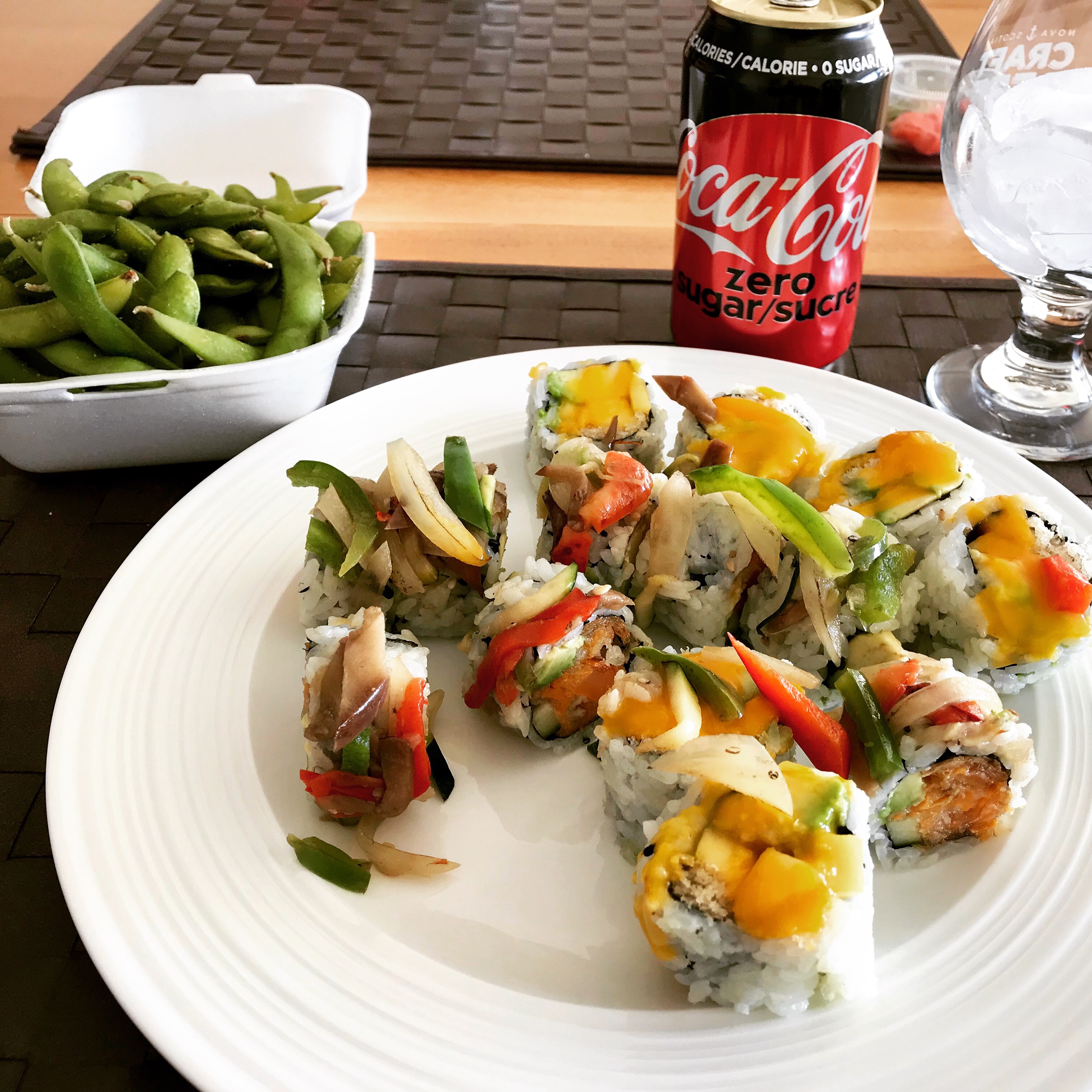 February was a very stressful month for both myself and Brian, and the weather was less than nice. Recently a Sushi restaurant opened near our building. The below has been happening a lot aka “take out”.