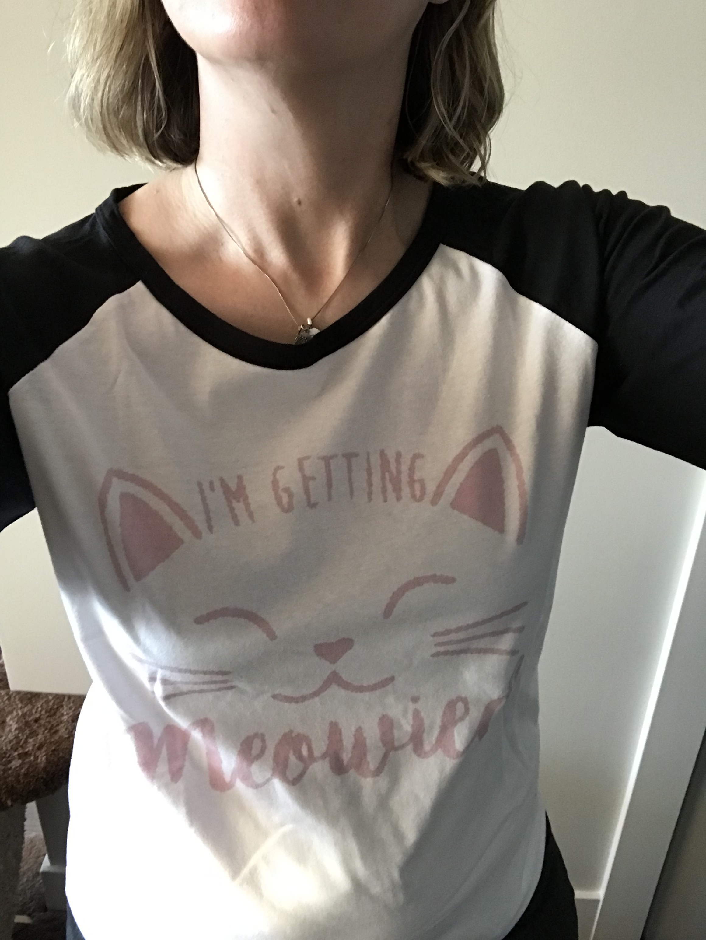 I feel like I am at confession and I feel rather ashamed for failing so fantastically. Where do I start? Let’s start with my kitty crazed obsession for silly T-shirt’s with “cat-tastic” expressions. I will not go into details and just post the evidence in order of purchase.