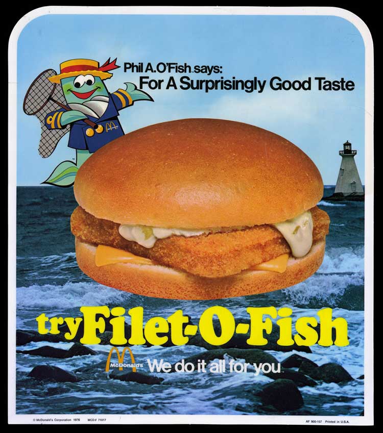 Another fun fact about this Lenten specialty was a mascot of sorts for the Filet-O-Fish it was Phil A. O’Fish a friendly looking carp who was a funny nod to the Irish Catholics with an Irish last name to boot – O’Fish.