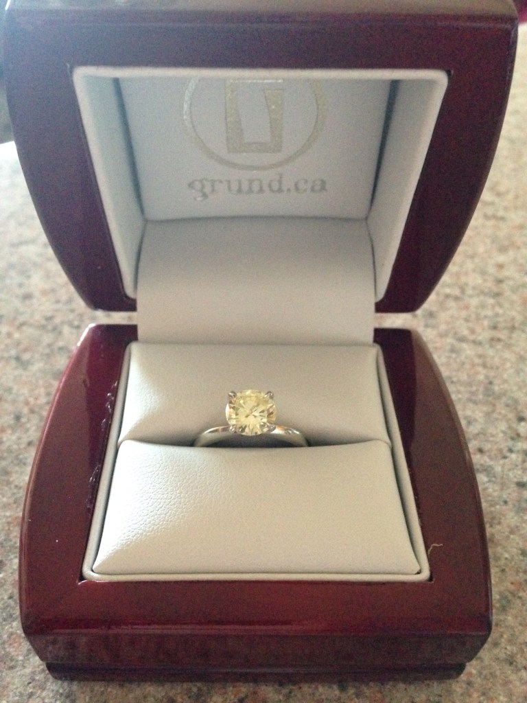 The champagne diamond in my engagement ring comes from my Mom’s belated “engagement ring”. She married my Dad at 19 and they were just kids so when they got married, they had very simple gold bands made. The ring she received later in her 20s had a cinnamon diamond on each side of the main diamond.