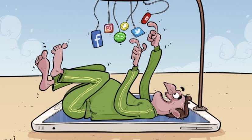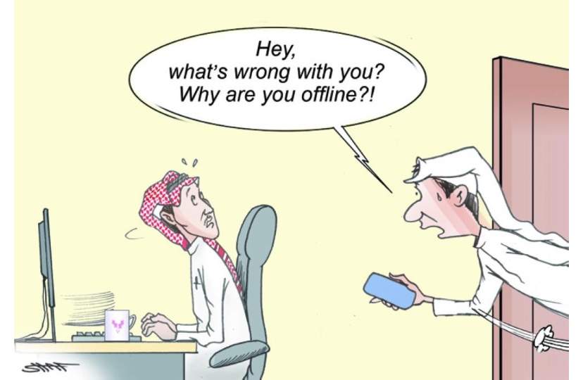 Being connected is a global issue. This is a cartoon from the Saudi Gazette on Social Media Addiction